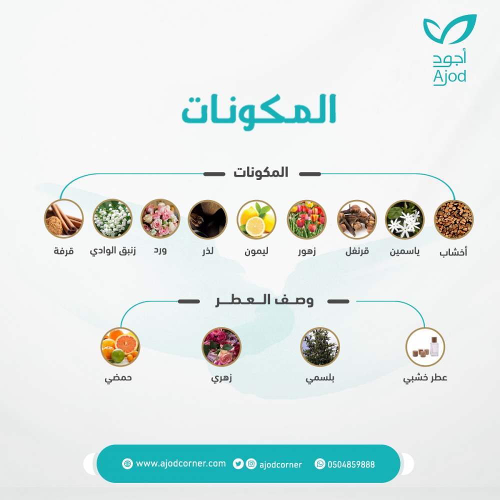 مخلط من الأخشاب - ياسمين - قرنفل - زهور - ليمون - لذر - ورد - زئبق الوادي - قرفة